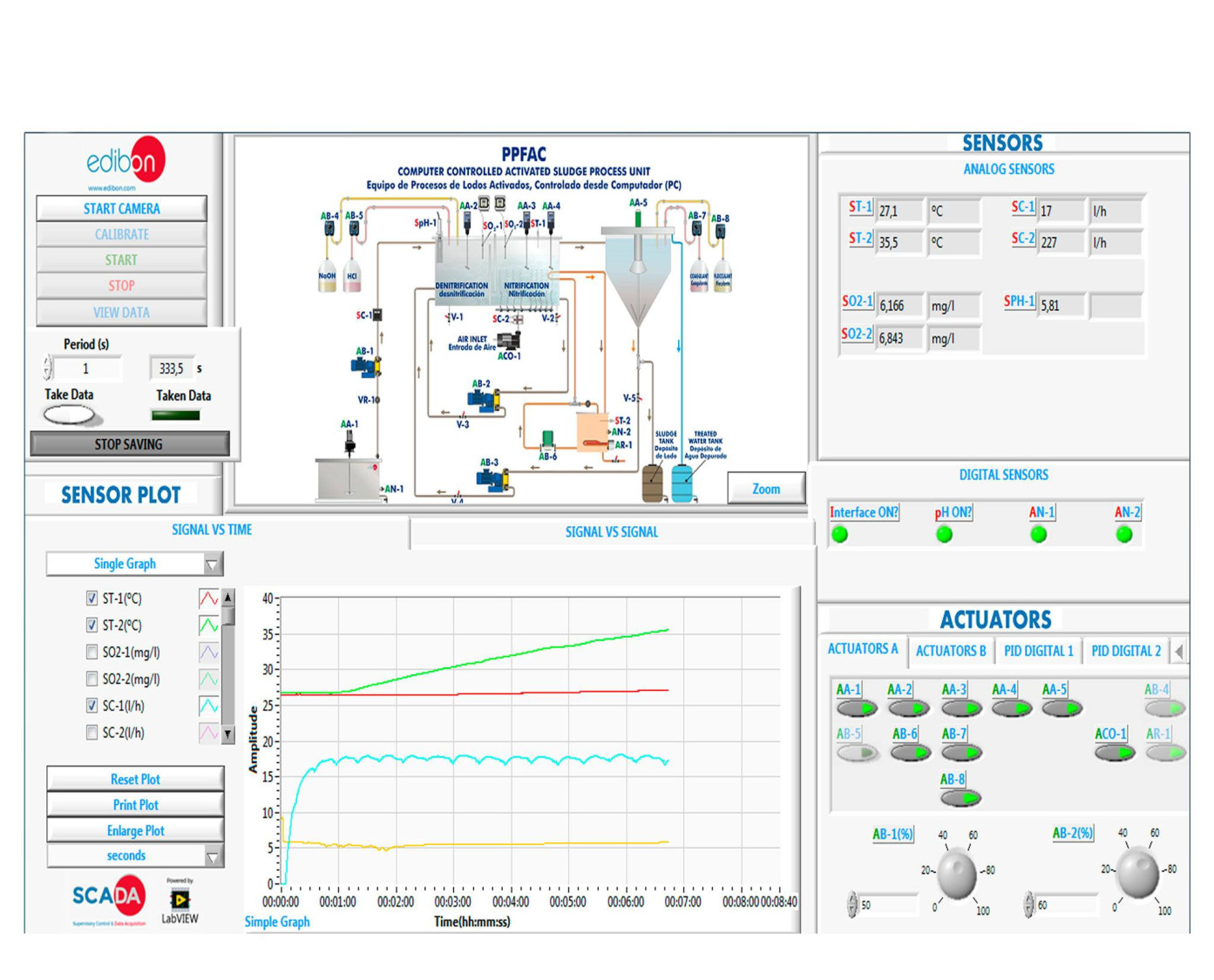 The Computer Controlled Activated Sludge Process Unit, "PPFAC", designed by EDIBON, allows to simulate the function of a wastewater treatment plant, breaking down water organic components with aerobic microorganism cultures (activated sludge).