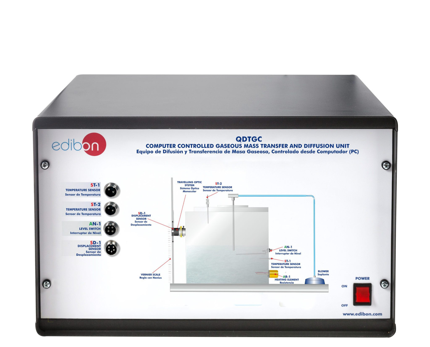 The Computer Controlled Gaseous Mass Transfer and Diffusion Unit, "QDTGC", designed by EDIBON, allows the students to familiarize with the theoretical concepts about mass transfer unit operations, specifically the diffusion of a volatile liquid in an inert gas, obtaining very useful experimental data and results for the good practical understanding of the process and, therefore, for the technical training of the students.