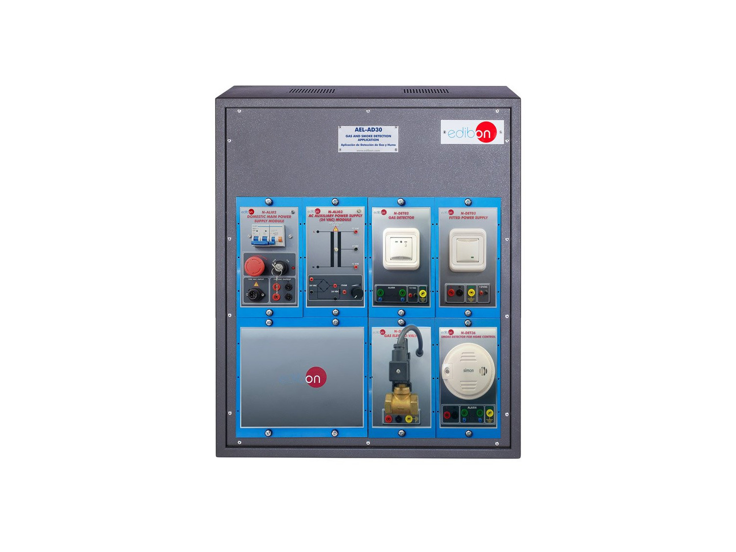 The Gas and Smoke Detection Application, "AEL-AD30", has been designed by EDIBON to study the operation of a gas leak detection and fire prevention system. This application includes two types of sensors. On one hand, there is a gas detector capable to detect explosive and toxic gases, such as natural gas, propane, butane, etc. It can also detect smoke from combustion, so it is a very complete sensor. On the other hand, there is an optic smoke detector, capable to detect visible gases, although it must not be installed close to water heaters to avoid a false positive result. The application also includes a solenoid valve to close the gas circuit in case of leakage. The student can simulate with all of these devices some emergency situations to understand the operation of the main gas detection systems in the market.