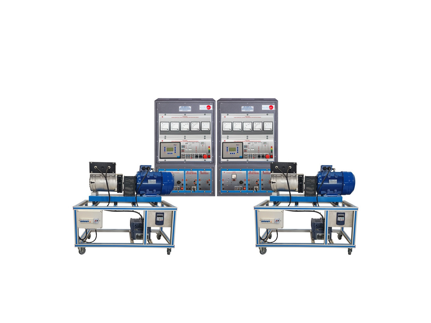 The power generation system includes two motor-generator groups, each equipped with its own control, measurement, and protection module to guard against different types of faults. These generators can regulate voltage and frequency or power output, depending on the selected operating mode. The system can function in grid-following or grid-forming mode, which is automatically determined and adjusted based on the state of all circuit breakers.