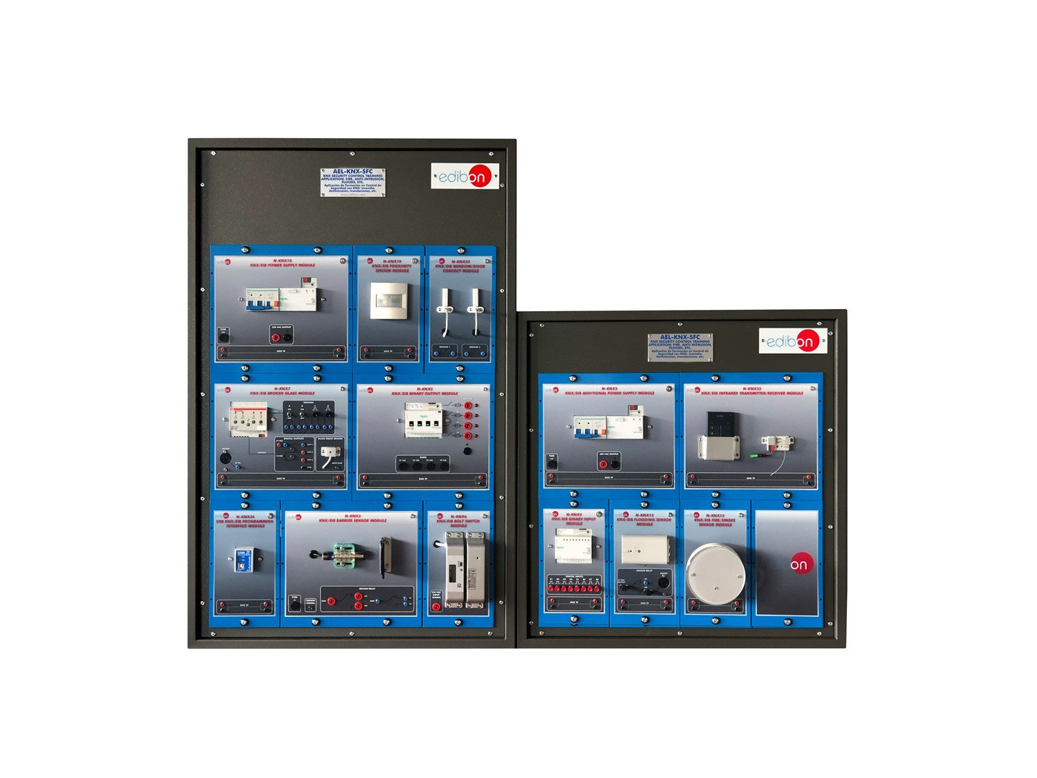 AEL-KNX-SFC. KNX Security Control Training Application: Fire, Anti-intrusion, Floods, etc. Practices involving the use of detectors to ensure building security. Anti-intruder alarms, fire alarms, flood alarms, etc.