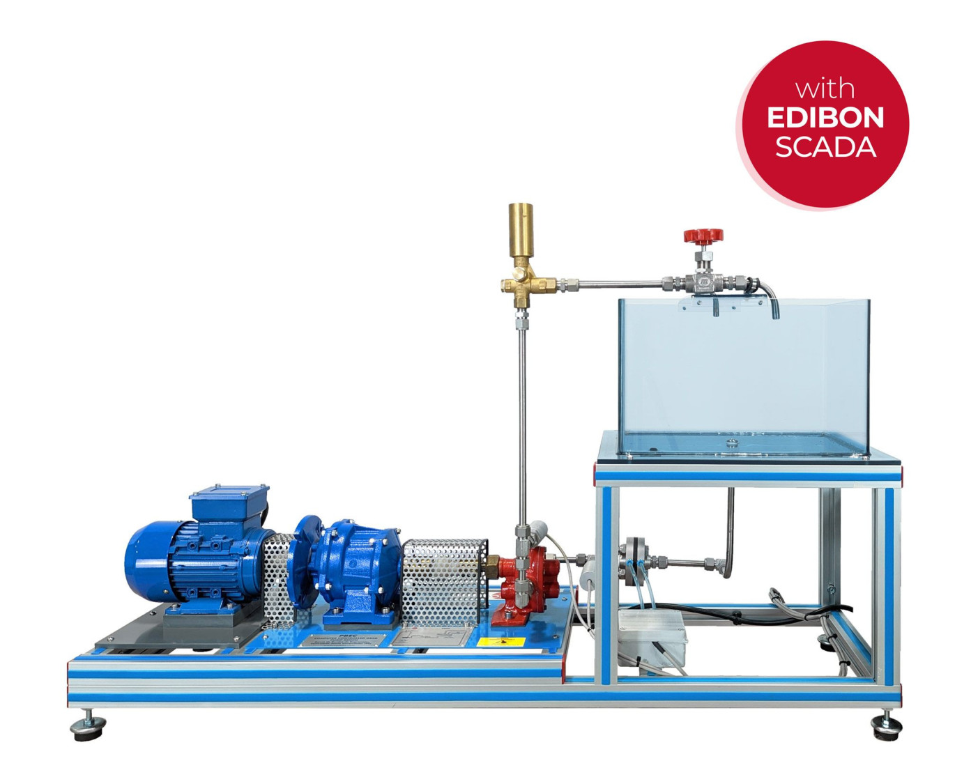 The Computer Controlled Gear Pump Bench, "PBEC", has been designed by EDIBON to obtain the most important characteristics curves and parameters of a gear pump bench.