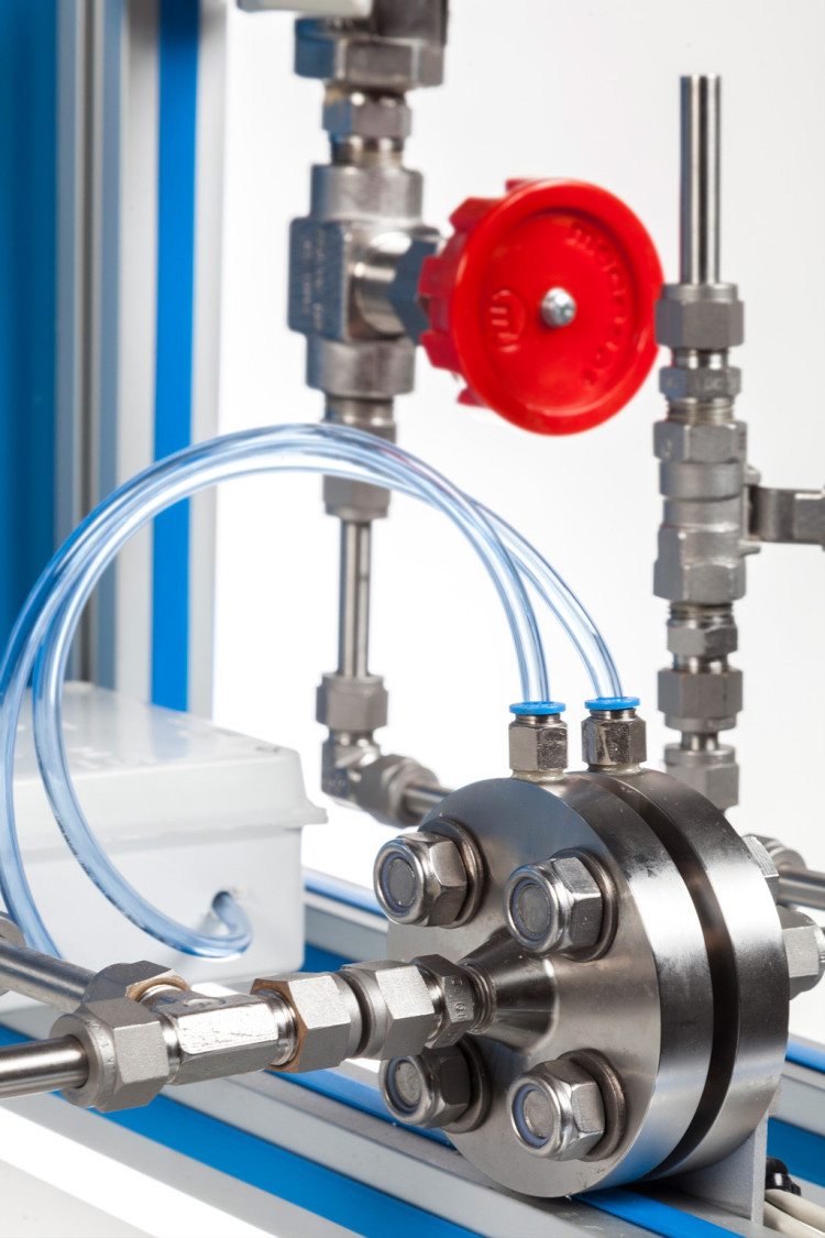 The Computer Controlled Process Control Unit for the Study of Pressure (Air), "UCP-P", consists of a compressed air duct whose flow is controlled by a pneumatic valve (the compressed air or gas source is not included).
