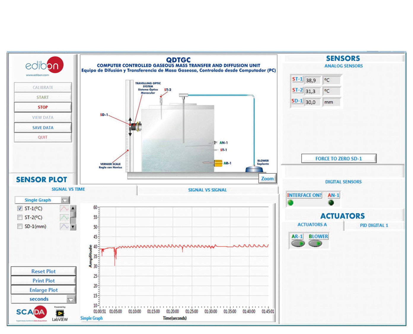 The Computer Controlled Gaseous Mass Transfer and Diffusion Unit, "QDTGC", designed by EDIBON, allows the students to familiarize with the theoretical concepts about mass transfer unit operations, specifically the diffusion of a volatile liquid in an inert gas, obtaining very useful experimental data and results for the good practical understanding of the process and, therefore, for the technical training of the students.