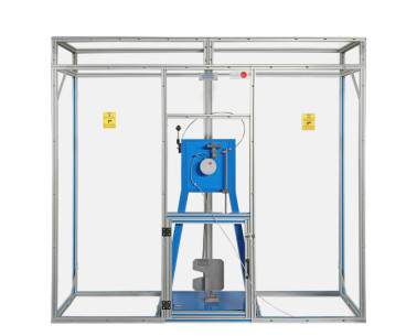 Both the area where the test piece is located and the motor axis output are covered with a protection cage, without it the unit does not work, since it is provided with a safety system to avoid accidents.