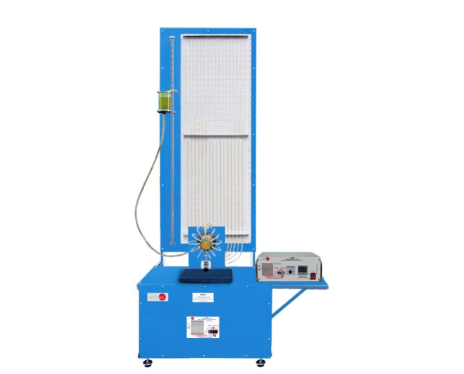 The radial and the axial distribution of pressure of the oil film in the sliding bearing can be recorded in the bearing gap at 12 equi-spaced pressure tappings around its perimeter and four along the length. All pressure tappings are connected by flexible plastic tubes to the rear multi-manometer panel with 16 tube manometers mounted on board, to show the pressure of oil at all 16 points at all times.
