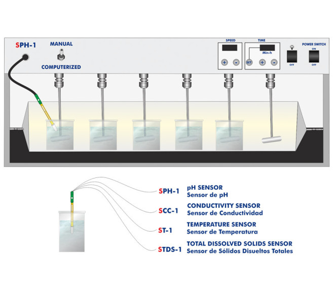 The Computer Controlled Flocculation Test Unit, "PEFC", allows to study the coagulation and flocculation operations and to analyze the main parameters that determine the colloids removal operation.