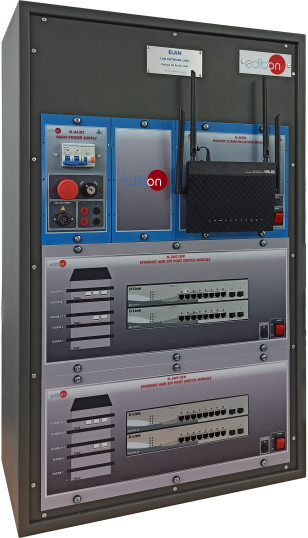 The unit allows designing different network structures and topologies, including the creation of VLAN by managing the configuration of the switches. In addition, the switches include SFP ports, which allows the use of fiber optic cable connection for the study of structured cabling and ISO standards, characteristic of enterprise environments in multi-storey buildings.