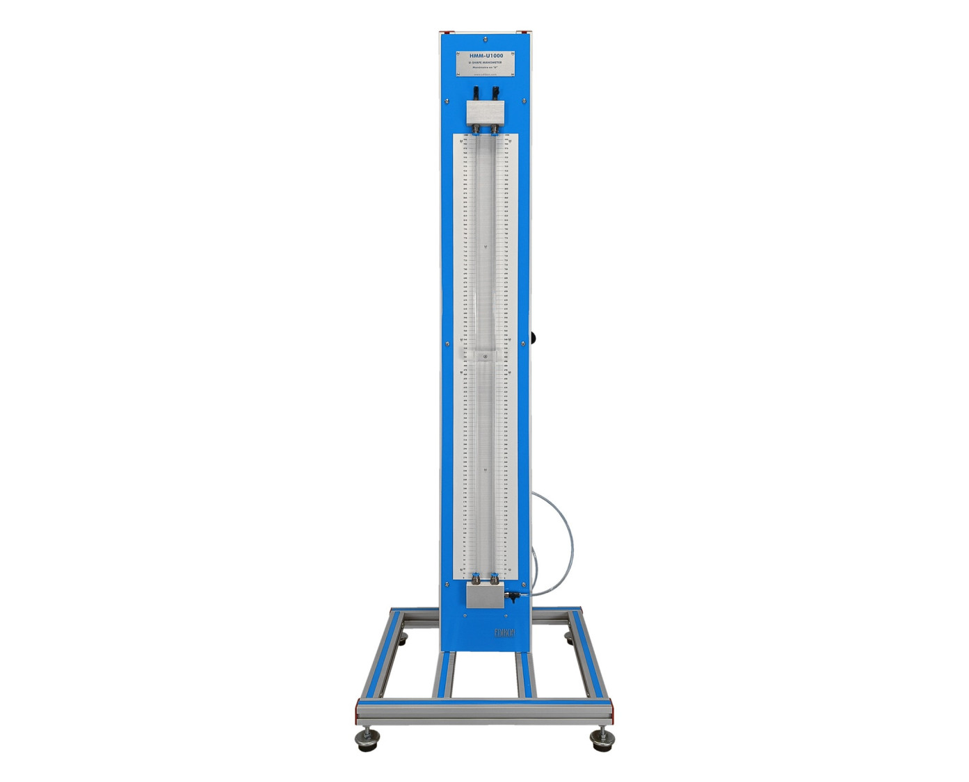 The U-Shape Manometer, "HMM-U1000," designed by EDIBON, allows the study of various pressures and their relationship with the fluid. It measures the difference in liquid level in its columns, providing vital information for pressure analysis in different situations.