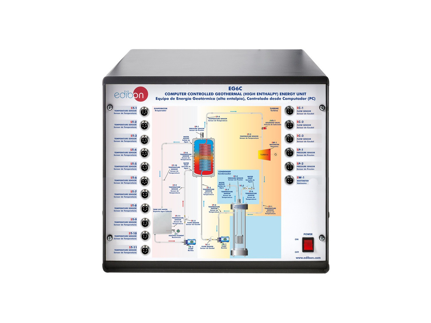 The Computer Controlled Geothermal (high enthalpy) Energy Unit, "EG6C", developed by EDIBON, has the aim of introducing the student in a renewable energy, increasingly important.