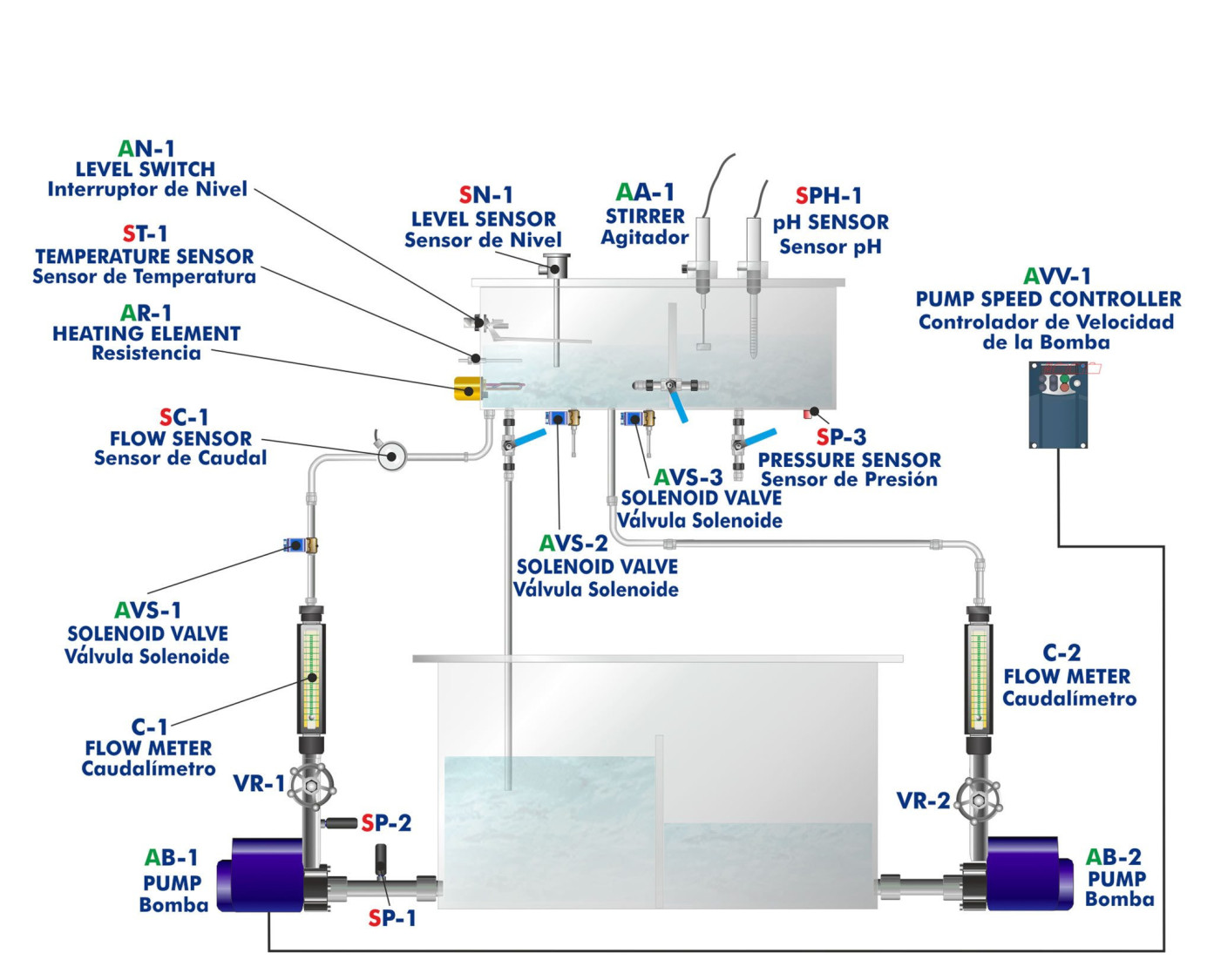 The Computer Controlled Process Control Unit (Speed Controller), "UCPCV", designed by EDIBON, allows the study of several types of automatic control and can be used to control different variables (flow, level, temperature, pressure, pH, conductivity and TDS) in several ways.