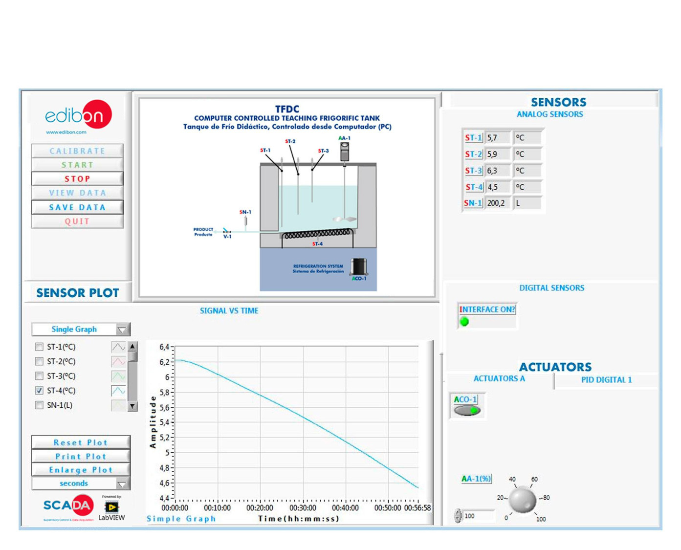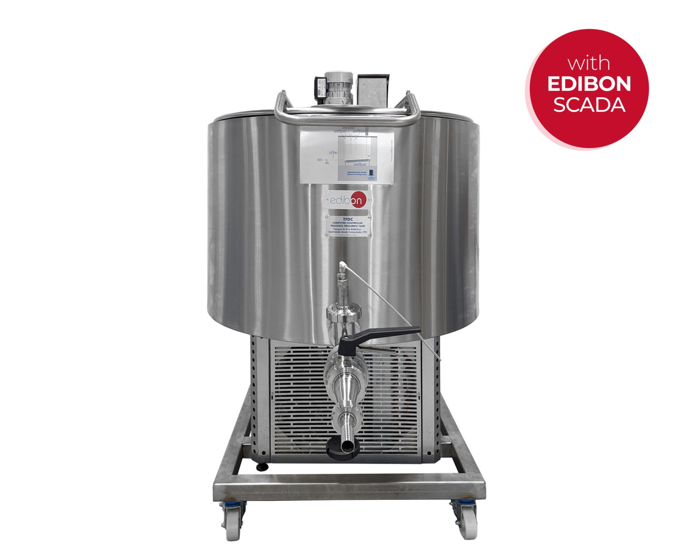 The Computer Controlled Teaching Cold Tank, "TFDC", designed by EDIBON, is a food grade stainless steel tank with a refrigeration cycle to maintain the liquid product at the desired temperature. It is effectively insulated with injected polyurethane.