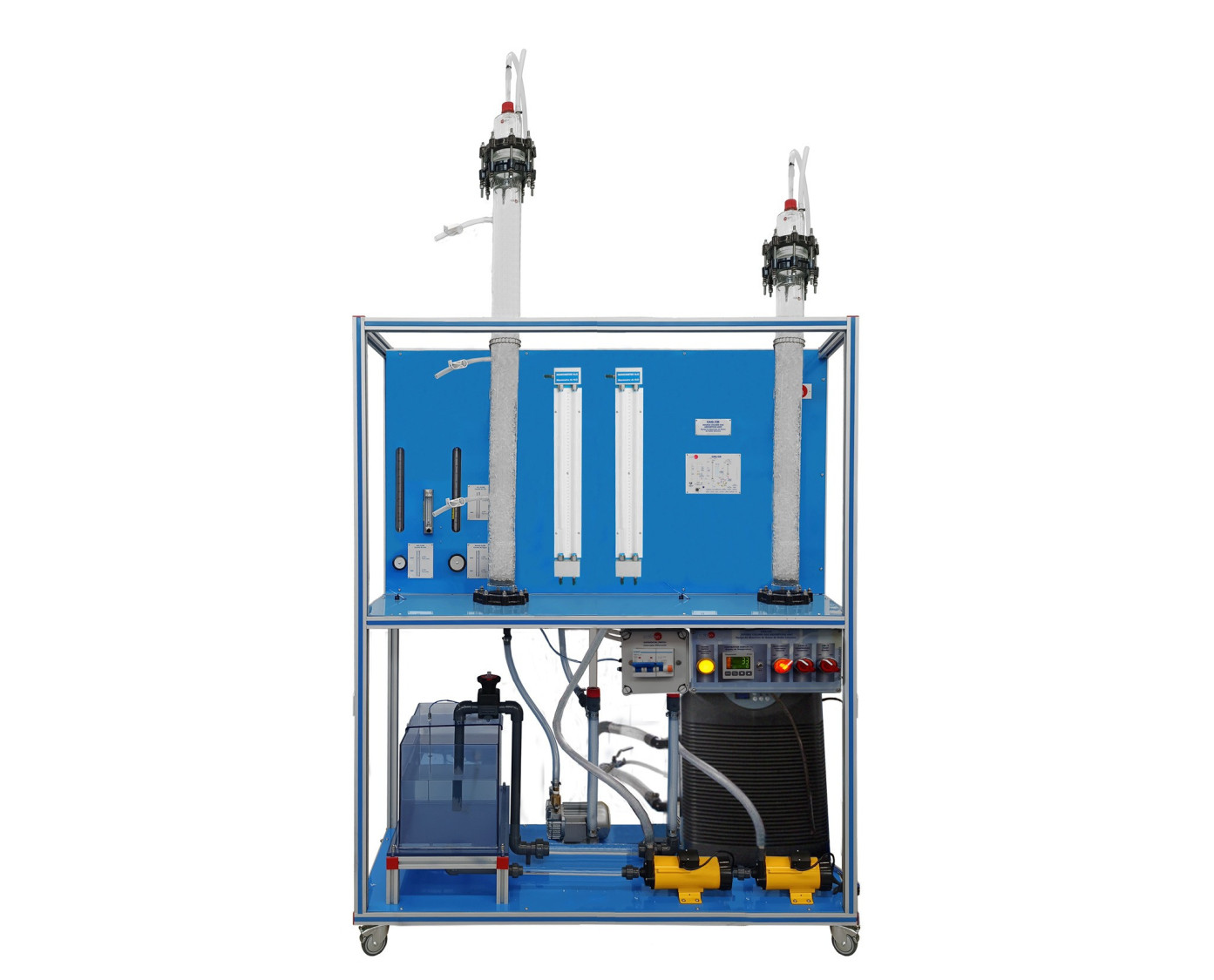 The Double Column Gas Absorption Unit, "CAG/CD", designed by EDIBON, allows a complete study of gas absorption and desorption processes in packed columns, accurately reproducing the operating conditions used in the chemical and environmental industries.