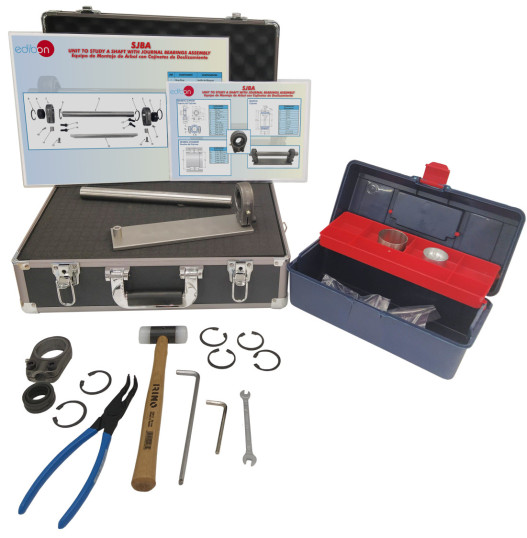The Unit to Study a Shaft with Journal Bearings Assembly, "SJBA", unit is a mechanism with two bearings and a dismountable ground steel shaft, with which dimensional and exploded drawings are enclosed for identification of its parts. In addition, the necessary tools and a series of instructions for the correct assembly and disassembly of the unit are supplied.